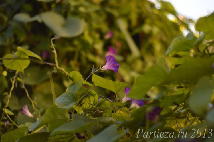 Зелёный нежный вьюнок распустил свой фиолетовый колокольчик...
